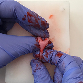The model also helps trainees practice their suturing skills on the abdominal wall musculature and skin layers upon completion of the spay procedure.